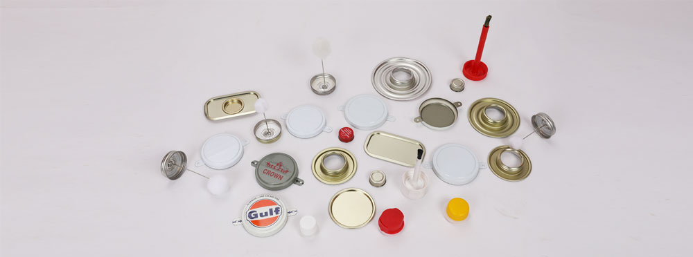 We have the complete range of Components used in the Tin Can industry. Top Components with piercing for various types of Plastic Spouts, Can Closures for Push-Fit & Pull Out Spouts, EOE’s (Easy Open Ends), One Piece Monotop Components with Metal Inserts and a Screw Cap, Dome Shaped One Piece Tops, Integrated Top Components with a Metal Insert and Screw Cap, RLT Components, D/T Rings & Lids, Triple Tight Rings & Lids, Components with Dauber Applicator Caps, Food Closures & Sanitary Ends, Paint Closures, Composite Can Closures, 2”, ¾” and 80 mm Drum and Barrel Cap Seals, and any other customisable Components & Closures as required by our customers.